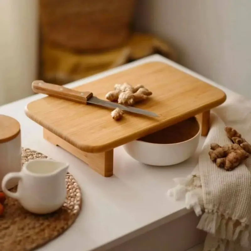 • وظائف متعددة: يمكن استخدامها كبلانشة لتقطيع الخضروات والفواكه، أو كقاعدة أنيقة لتزيين مطبخكِ ووضع برطمانات التوابل أو زجاجات الزيت.