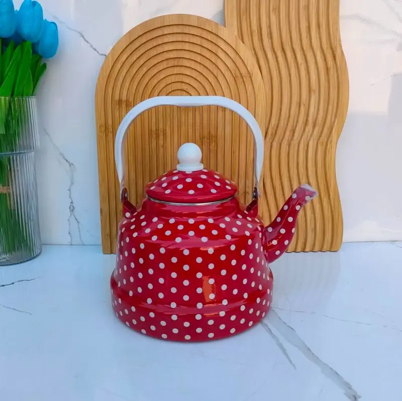 أضف لمسة من الأناقة الكلاسيكية إلى مطبخك مع براد "دوتس" المعدني. يتميز هذا البراد بتصميم عصري وجذاب باللون الأحمر المنقط باللون الأبيض، وسعة كبيرة تصل إلى 2.5 لتر، مما يجعله مثاليًا لتحضير المشروبات الساخنة لعائلتك وضيوفك. كما أنه يأتي بتصميم مستورد يجمع بين الجودة والشكل الأنيق.