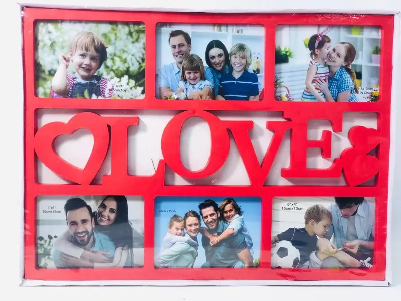 إطار "ذكريات الحب العائلية" ليس مجرد قطعة ديكور، بل هو حارس ثمين للحظاتك التي لا تُنسى. صُمم هذا الإطار من البلاستيك عالي الجودة ليجمع ستة من أثمن صورك، مع كلمة "LOVE" البارزة في المنتصف التي تضفي على الإطار عمقًا ودفئًا. إنه قطعة فنية مصممة لتحكي قصة عائلتك أو أصدقائك أو أي علاقة تجمعها المحبة.