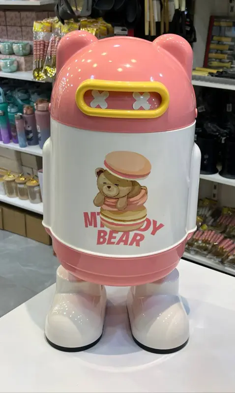 • تصميم فريد: يأتي بشكل دب ظريف يقف على أرجل، مع غطاء (رأس الدب) يفتح بسهولة، مما يجعله قطعة مميزة في غرفة الأطفال أو المكتب.