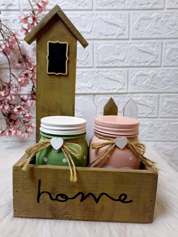 قطعة فنية لمساتك الخاصة. أضيفي لمسة ريفية ودافئة إلى ديكور منزلك مع هذا الطقم المميز، الذي يتكون من صندوق خشبي صغير بث…