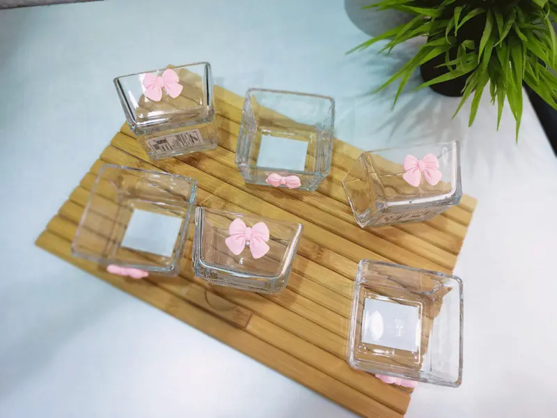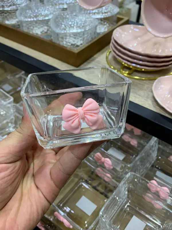 لمسة من الأناقة والجاذبية لكل مناسبة. هذه البولة الزجاجية المستوردة تتميز بتصميمها المربع الأنيق مع فيونكة جذابة، مما ي…