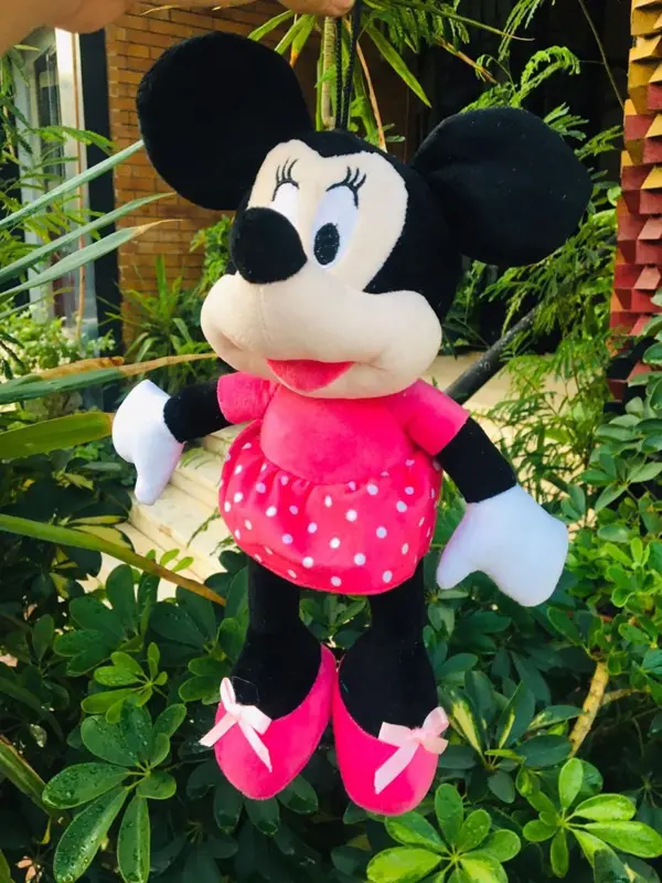 • شخصية ميني ماوس المحبوبة: تصميم مطابق لشخصية ميني ماوس الشهيرة، بفستانها المنقّط وعقدة الفيونكة الأنيقة، مما يجعله شيك جداً وواقعي.