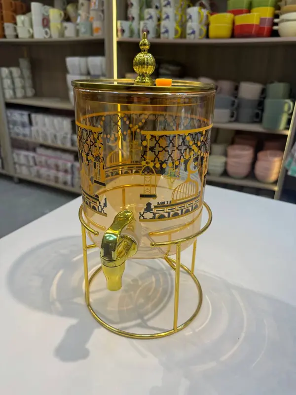 ارتقي بمائدة طعامكِ في المناسبات والعزومات مع ديسبنسر العصير البايركس الفاخر! يتميز هذا الديسبنسر بتصميمه "العثماني" الأنيق الذي يضيف شكلاً شيك جداً على السفرة، ويجمع بين الجمال والوظيفة ليصبح قطعة أساسية، خاصة في عزومات رمضان.