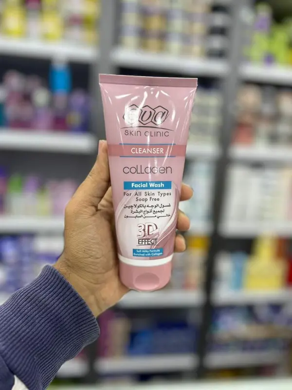 اكتشفي سر الشباب مع غسول إيڤا بالكولاجين، المصمم بتركيبة فريدة تعمل على تنظيف البشرة بعمق وتجديدها. هذا الغسول يمنح بشرتكِ تأثير 3D لإطلالة مشرقة وحيوية، حيث ينظفها من الأتربة والزيوت الزائدة ويزيل آثار المكياج بالكامل.