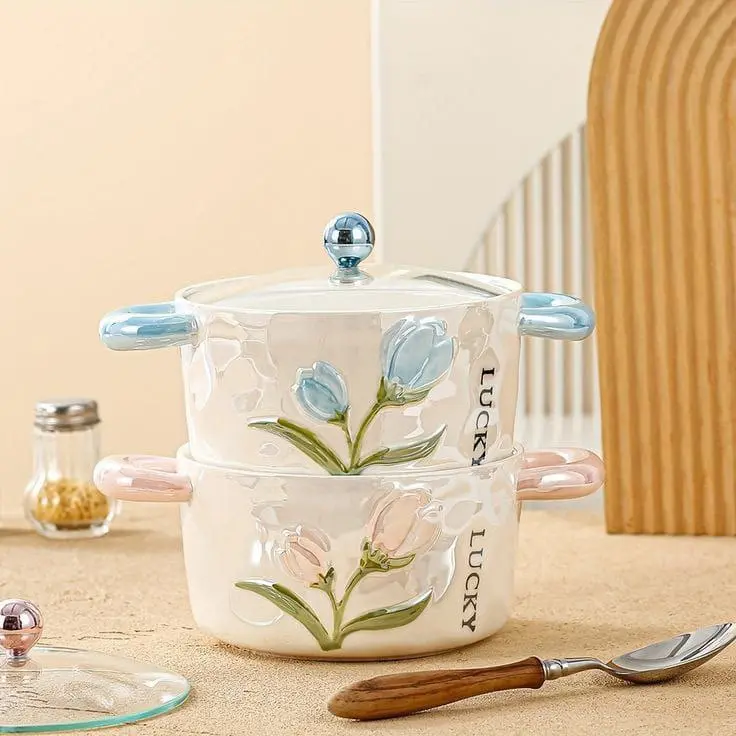 أناقة فائقة وتعدد لا مثيل له في الاستخدامات. نقدم لكِ هذه الحلة الأنيقة والعملية، وهي قطعة مميزة تم تصميمها بعناية لتناسب استخداماتك المتعددة في المطبخ. تتميز الحلة بتصميمها المستدير المصنوع من البورسلين عالي الجودة والمزين بزخارف وردية جميلة، كما أنها مزودة بغطاء بايركس شفاف يمكن استخدامه لأغراض متعددة. يمكن استخدامها لطهي الأطباق المختلفة مثل الشوربات والنودلز، كما أنها مثالية لتقديم الطعام مباشرة على المائدة، مما يضيف لمسة من الجمال. يمكن وضع الحلة في الميكروويف والفرن، واستخدامها على النار مباشرة (بدون الغطاء)، مما يجعلها قطعة مرنة وعملية.