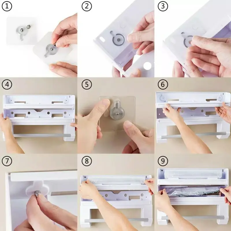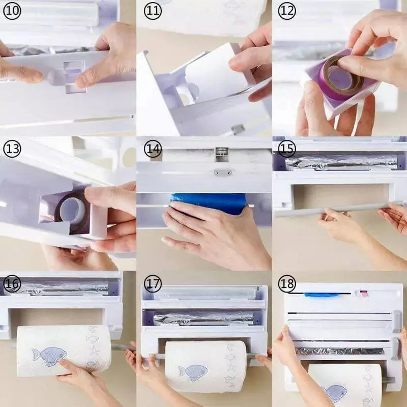 • سهولة في الاستخدام: يضمن سهولة في سحب وتقطيع الرولات، ويساعد في تنظيم سطح العمل أو المطبخ بالكامل.
