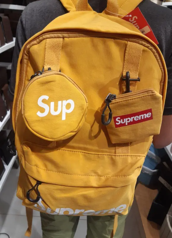 صُنعت هذه الحقيبة من خامة متينة وعالية الجودة، مما يجعلها قوية ومقاومة للاستخدام اليومي. تتميز بتصميم عصري مع شعار Supreme البارز، وتحتوي على عدة جيوب لتنظيم أغراضك بسهولة، بالإضافة إلى أحزمة مبطنة وقابلة للتعديل لتوفير أقصى درجات الراحة.