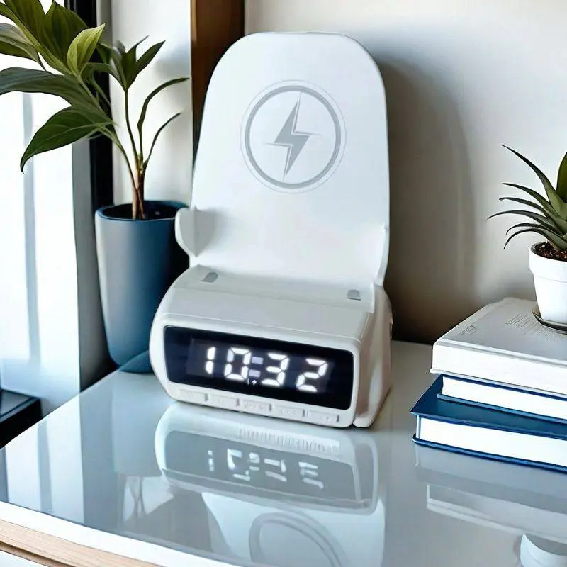 احصلي على كل ما تحتاجينه على مكتبكِ أو الكومودينة في جهاز واحد أنيق وعصري! هذا المنتج 5*1 هو قطعة التكنولوجيا المتكاملة التي تجمع بين الترفيه، الشحن، والتنظيم.
