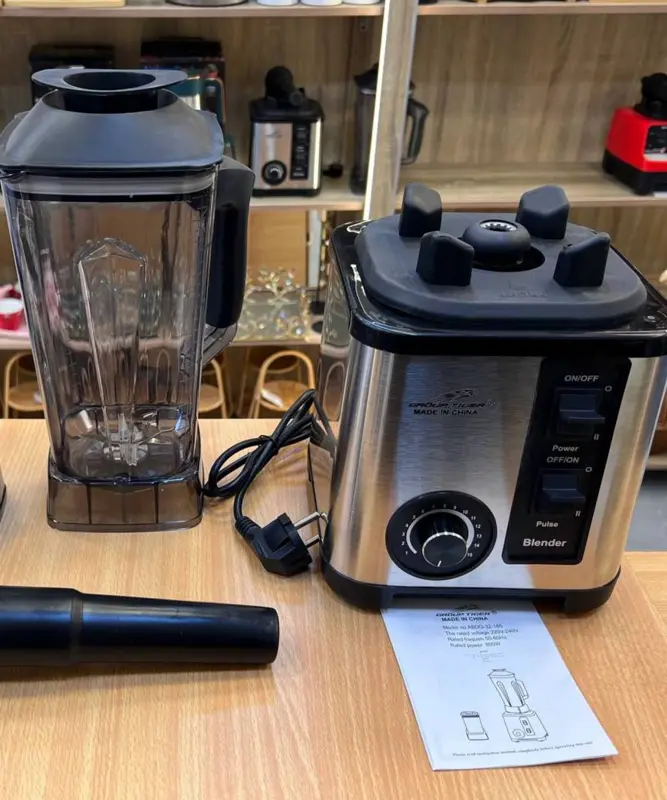 يتميز الخلاط بموتور نحاسي مع مروحتين للتبريد، مما يضمن أداءً مستمرًا ومثاليًا. الشفرات مصنوعة من الستانلس ستيل، مما يجعلها قوية جدًا في تقطيع وفرم أصعب المكونات. الشفشق مصنوع من مادة البولي كربونات، مما يجعله غير قابل للكسر ويدوم طويلًا.