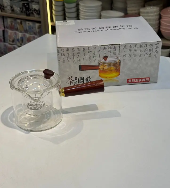 أضف لمسة من الأناقة والجمال الطبيعي إلى روتينك اليومي مع هذه الكنكة المصنوعة من البيركس الحراري. تتميز الكنكة بتصميمها الأنيق، ويدها الخشبية التي تمنحها مظهرًا فريدًا ومريحًا عند الاستخدام.