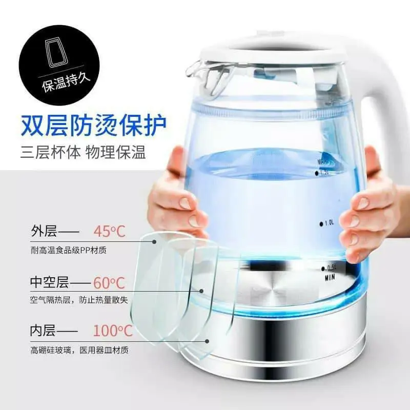 • سعة كبيرة وقوة عالية: يأتي بسعة 2 لتر لتلبية احتياجاتك اليومية من المياه المغلية، ويعمل بـ قوة 1500 وات لضمان غليان سريع وفعّال.