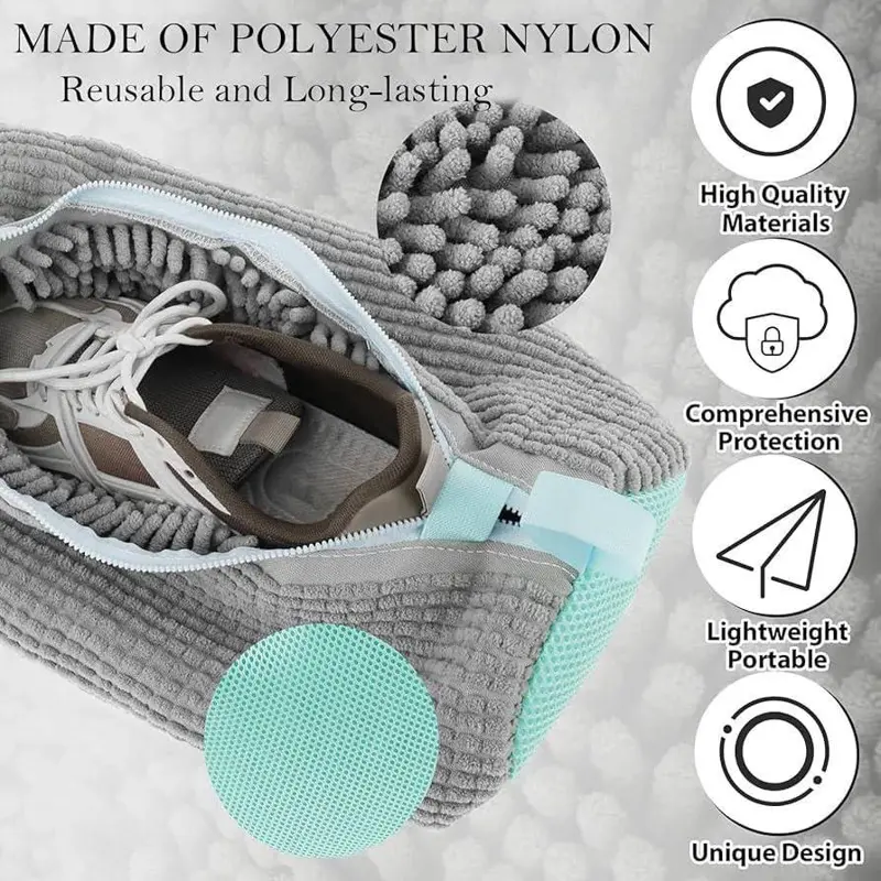 الحل المثالي لتعيد حذاءكِ جديدًا في كل مرة. هذا المنتج المستورد عالي الجودة هو ابتكار فريد ينهي عناء تنظيف الأحذية، فهو مصمم من المايكروفايبر مع فرشاة داخلية تضمن تنظيفًا عميقًا. ضعِ حذاءكِ داخل الكيس، وضعيه في الغسالة، وسيخرج كأنه جديد تمامًا دون أي ضرر. يتميز بحجمه الجامبو الذي يتسع لفردتي حذاء كاملتين، مما يجعله عمليًا وفعالًا في الحفاظ على أحذيتكِ المفضلة.