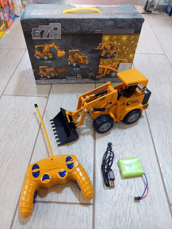 * يستخدم الطفل جهاز التحكم عن بعد لتحريك البلدوزر في جميع الاتجاهات (للأمام، للخلف، والالتفاف).