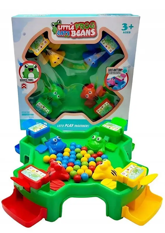 صُنعت اللعبة من بلاستيك آمن ومتين يضمن تحملها للعب الجماعي. طريقة استخدامها بسيطة للغاية؛ يختار كل لاعب ضفدعه الملون، ثم يبدأ الجميع في الضغط على الرافعة لجعل الضفادع تلتهم الكرات الموجودة في المنتصف.