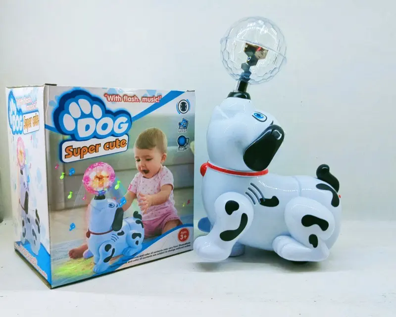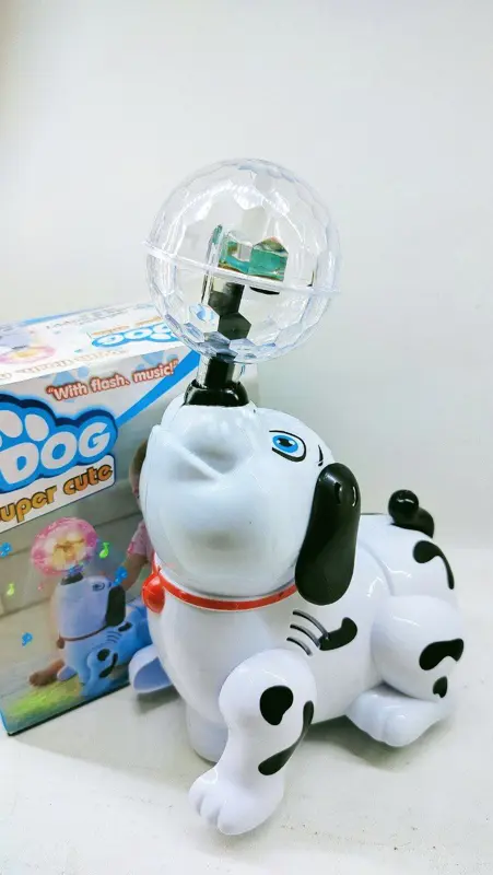 تتميز هذه اللعبة بـخامة وجودة عالية لتضمن متانة طويلة الأمد وسلامة لطفلك. الجزء العلوي من الكلب يحتوي على بلورة ديسكو تطلق إضاءات ملونة، بينما يبعث ليزر ثلاثي الأبعاد (3D) أشكالًا ضوئية رائعة على الجدران والأرضية. الكلب يصدر أصوات موسيقى مبهجة مع صوت نباح لطيف، مما يجعل تجربة اللعب أكثر تفاعلية ومتعة.