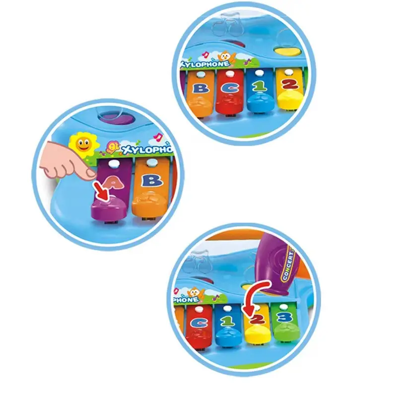 تتميز اللعبة بتصميم ثنائي الوظيفة. في الجزء العلوي، توجد لعبة المطرقة والكرات حيث يمكن لطفلكِ استخدام مطرقة البطوط اللطيفة لضرب ثلاث كرات ملونة. وعندما تسقط الكرات، فإنها تتدحرج على سلم الإكسيليفون الملون، مما يصدر نغمات موسيقية جميلة. صُنعت اللعبة من بلاستيك آمن ومتين لتحمل اللعب المتكرر.