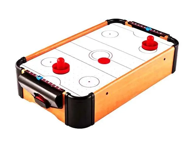 تتميز اللعبة بتصميم خشبي متين يضمن استدامتها. تعمل بمروحة داخلية صغيرة تُنتج تياراً هوائياً لجعل القرص ينزلق بسلاسة فائقة، مما يمنح اللعبة طابعاً واقعياً. تأتي المجموعة مع كل ما يلزم للعب: لوحة اللعب، وقرص واحد، ومضربين للاعبين.