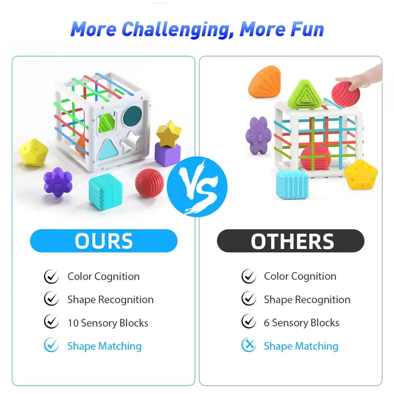 امنح طفلك أداة تعليمية ممتعة مع لعبة مكعب فرز الأشكال الملونة، المصممة خصيصًا لتعزيز مهارات التعرف على الألوان والأشكال الأساسية في سن مبكرة. تحتوي هذه اللعبة على مجموعة متنوعة من الأشكال الهندسية الفريدة مثل المثلثات، المربعات، المعينات، والسداسيات. يُعد المكعب المصنوع من شرائط مطاطية مرنة، إضافة مبتكرة تسهل على الطفل عملية فرز الأشكال وإدخالها في الأماكن المخصصة لها، مما يساعد على تنمية التنسيق بين اليد والعين والمهارات الحركية الدقيقة. هذه اللعبة ليست فقط وسيلة للترفيه، بل هي تجربة تعليمية تفاعلية ومحفزة تساعد على تنمية قدرات الطفل العقلية والحسية.