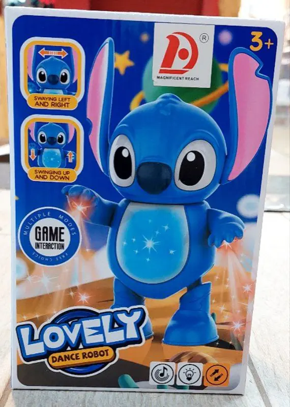 تتميز اللعبة بتصميم دقيق ومتقن لشخصية ستيتش، وهي مصنوعة من مواد آمنة ومتينة. تعمل ببطارية لتصدر الموسيقى وتقوم بحركات راقصة، مما يمنح طفلكم ساعات من المتعة والمرح.