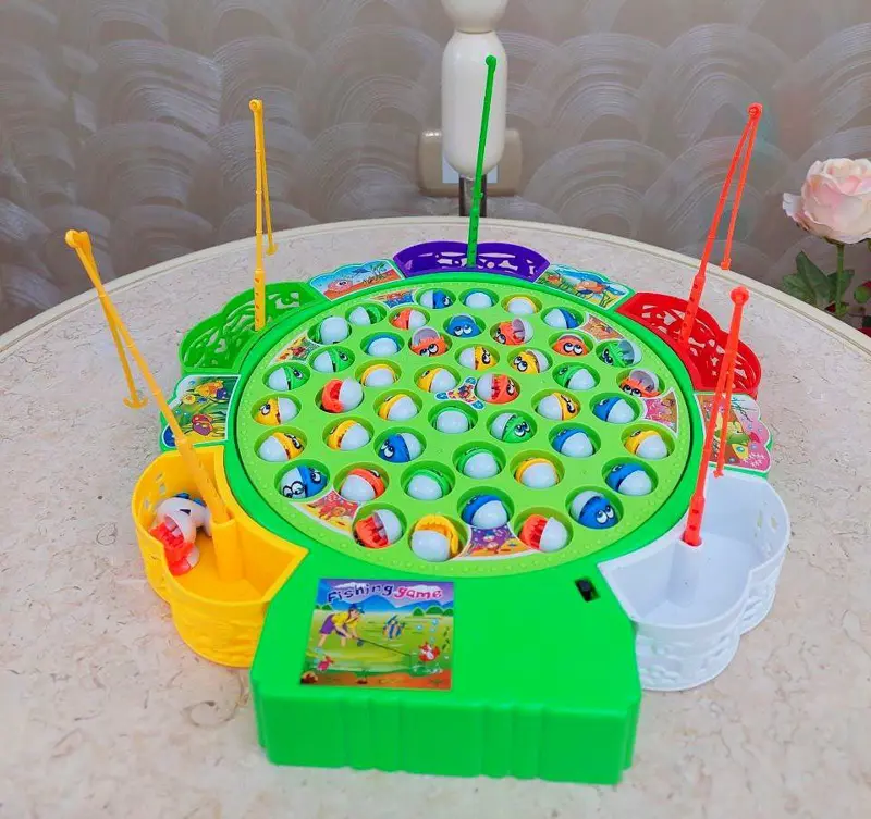 تتميز اللعبة بلوحة دائرية كبيرة تدور مع إيقاع الموسيقى، حيث تقوم الأسماك الملونة بفتح وغلق أفواهها بشكل متقطع. تتضمن المجموعة عدة قضبان صيد مزودة بخيوط ومغناطيس، لتسمح لأكثر من لاعب بالمشاركة. اللعبة تُعزز التنسيق بين اليد والعين وتُضيف أجواءً من الحماس من خلال الحركة والأصوات.