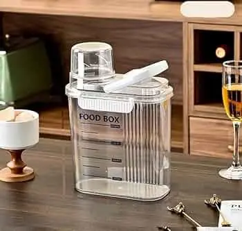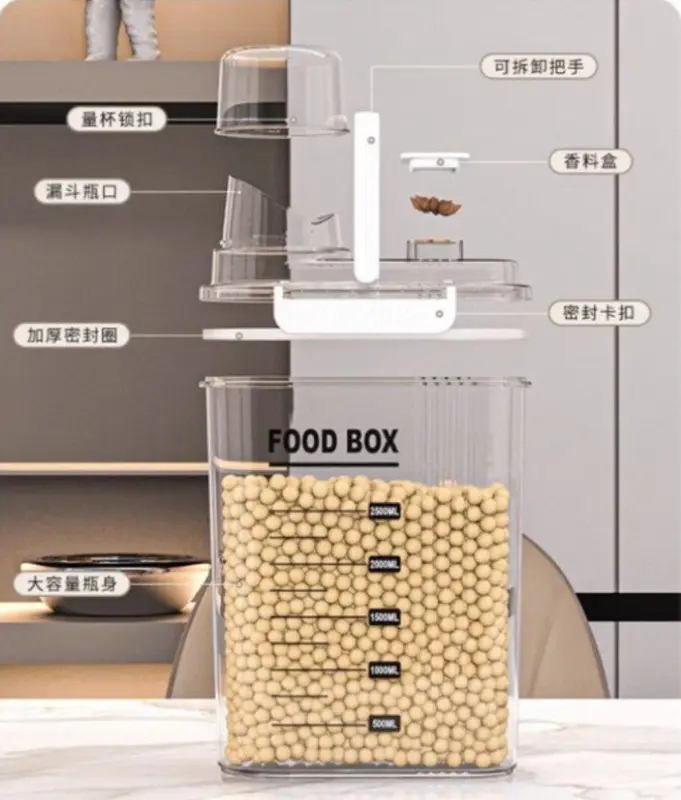 • متعددة الاستخدامات: لا تقتصر على الأطعمة الجافة، يمكن استخدامها أيضاً كعلبة مسحوق أو أي مساحيق أخرى.