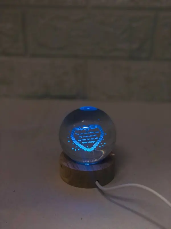 أضف لمسة من السحر إلى أي مناسبة مع البلّورة الزجاجية المضيئة بألوان متعدّدة وقاعدة خشبية. هذه البلّورة ليست مجرد قطعة ديكو…