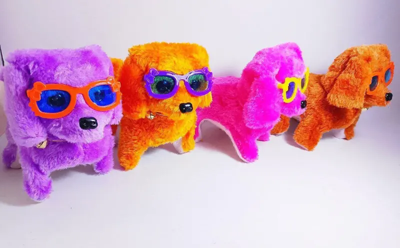يتميز هذا الكلب بفروه الناعم الذي يجعله مثالياً للعناق، ويأتي بتصميم فريد حيث يرتدي نظارة أنيقة ومربوط بجرس صغير يزيد من جاذبيته. بمجرد تشغيله، يتحرك الكلب بشكل مرح ويُصدر أصواتًا مبهجة مع أضواء ملونة.