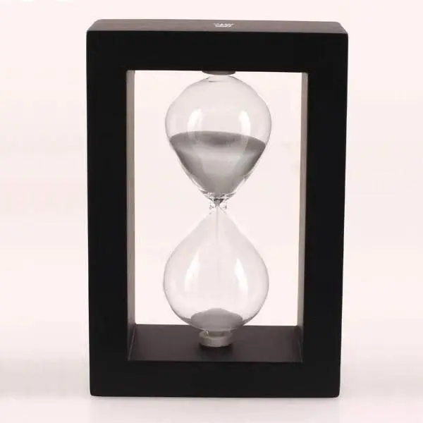 رائج الساعة الرملية الصغيرة بإطار خشبي مربّع ورمل ملوّن