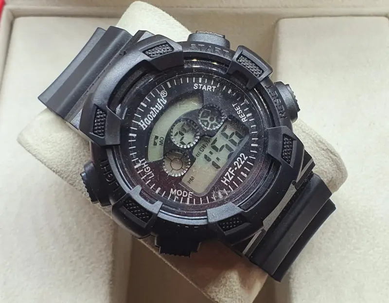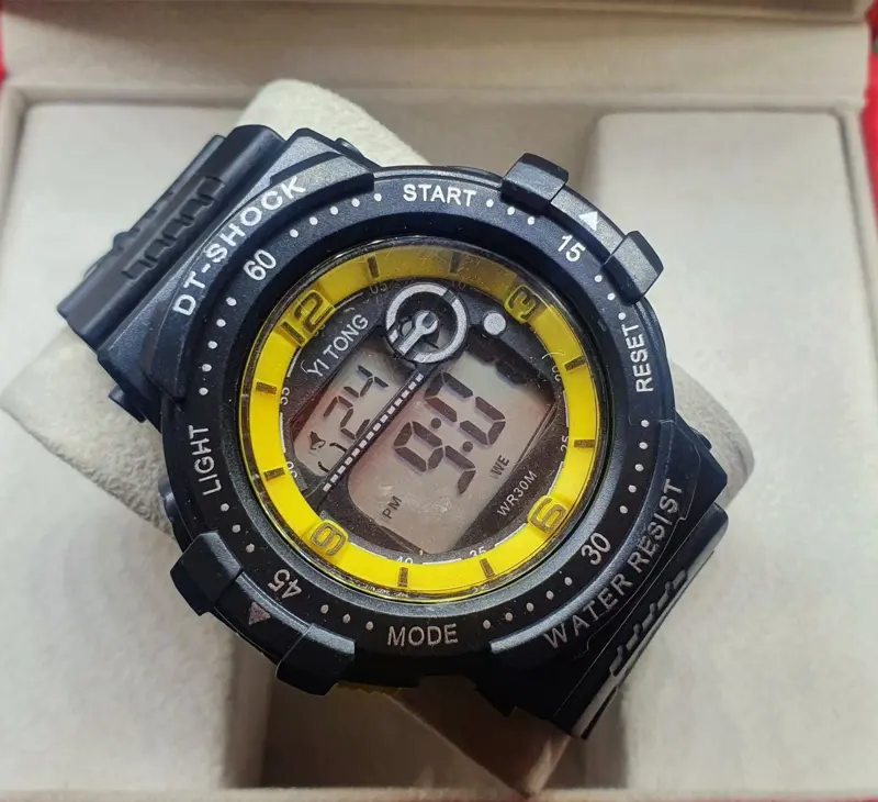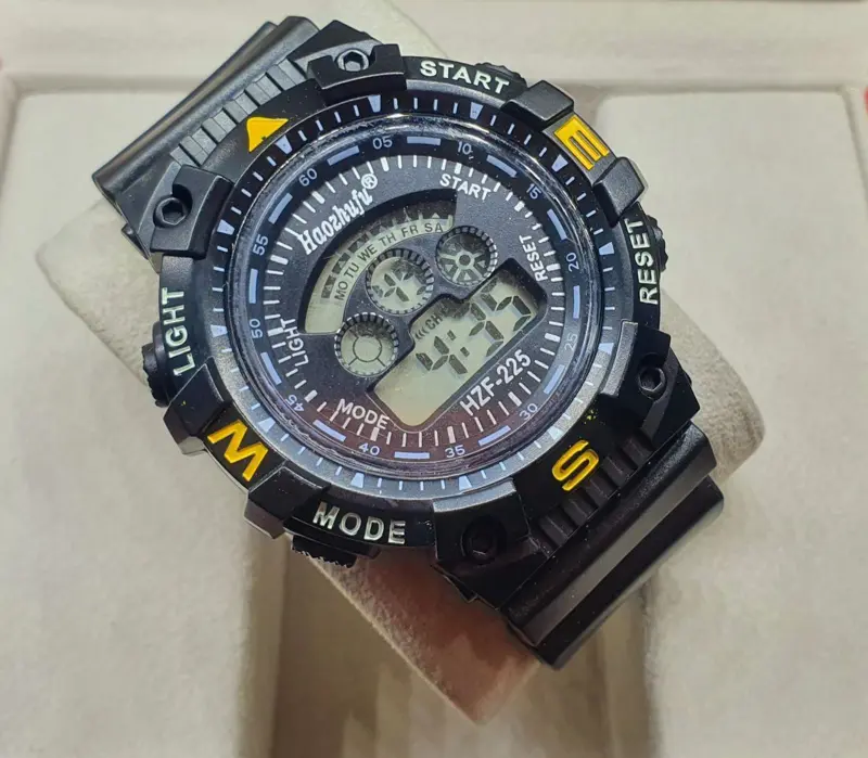تتميز هذه الساعة بكونها رقمية بالكامل، وتتضمن نتيجة وستوب ووتش، بالإضافة إلى إضاءة ليلية واضحة لسهولة الرؤية. الإطار الخارجي ضد الصدمات لضمان المتانة، والسوار مصنوع من الرابر الطبي لتوفير أقصى درجات الراحة. كما أنها مزودة بقفل معدني لضمان الأمان أثناء الارتداء.