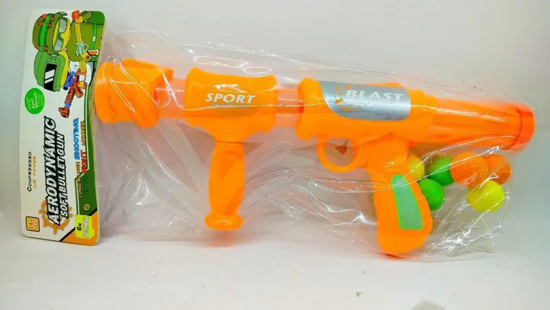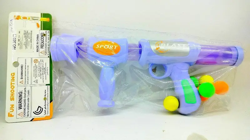 صُنع المدفع من بلاستيك متين يضمن قوته وتحمله. وتتميز الكرات بكونها مصنوعة من الفل الآمن، مما يجعلها غير مؤذية تماماً على الأطفال. طريقة استخدامه سهلة ومثيرة؛ فقط قم بوضع الكرات داخله، ثم اسحب المقبض للخلف واضغط للأمام لإطلاق الكرات بقوة.