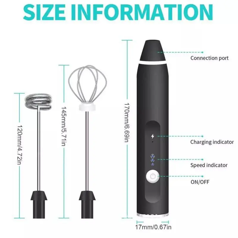 قوة وسهولة في متناول يدك. هذا المضرب العملي 2 في 1 يعمل بالشحن عبر USB، مما يمنحك حرية استخدامه في أي مكان وفي أي وقت. يتميز بثلاث سرعات مختلفة لتناسب جميع احتياجاتك، ويأتي مع غيارين: أحدهما مروحة للبيض والكريمة، والآخر سلكي للمشروبات والكابتشينو. يمكنكِ الآن الاستمتاع بأشهى الرغوات لمشروباتك المفضلة، أو تحضير الميلك شيك والأومليت بكل سهولة وسرعة.