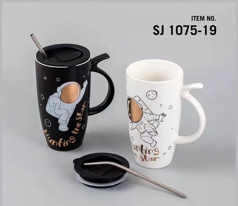 أضف لمسة من المرح والأناقة إلى لحظات قهوتك أو شايك مع هذا المج البورسلين المميز. يتميز المج بتصميم عصري ورسمة لرائد فضاء، مما يجعله قطعة فنية جذابة. يأتي المج مع غطاء مصمم للحفاظ على حرارة المشروب وشفاط من الستانلس ستيل، مما يجعله مثاليًا للاستخدام أثناء العمل أو في المنزل. يمكن استخدامه لتقديم القهوة أو الشاي أو حتى العصائر.