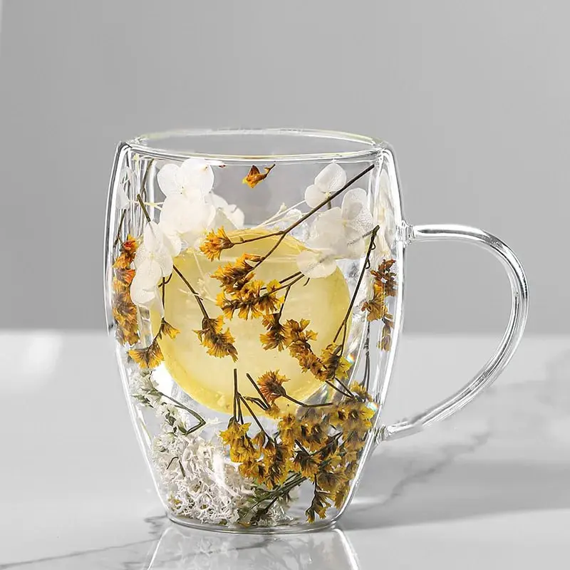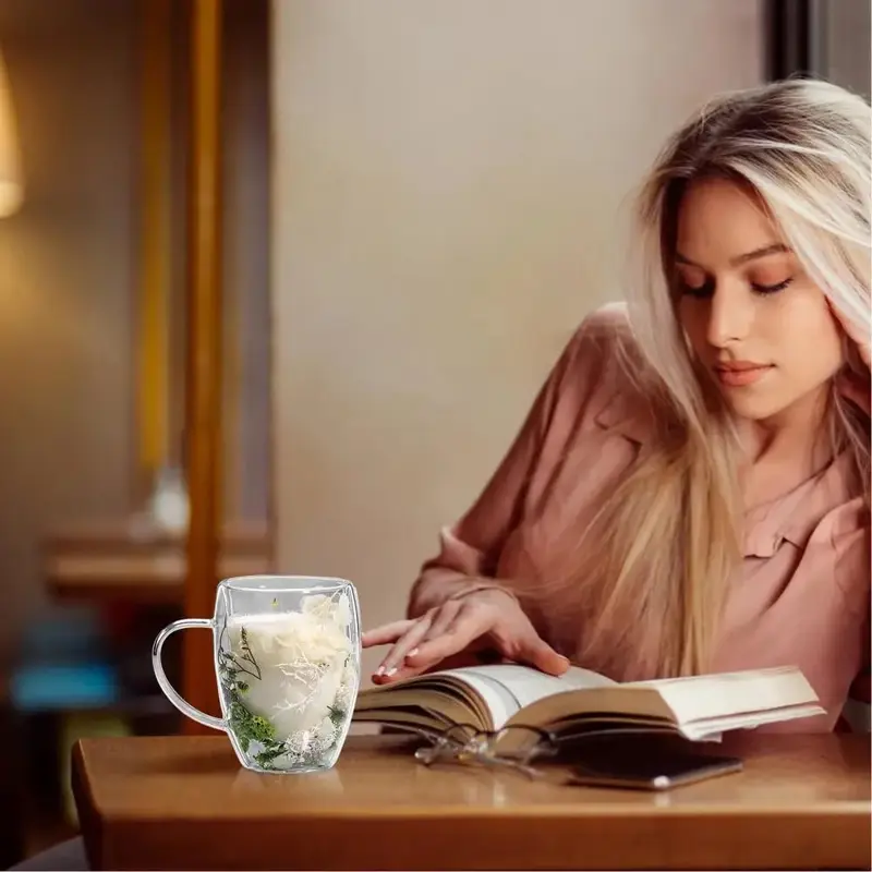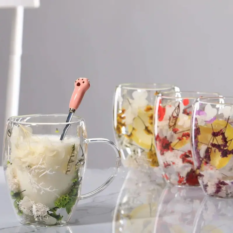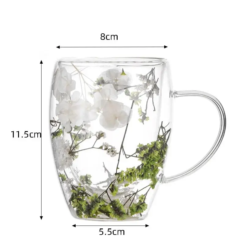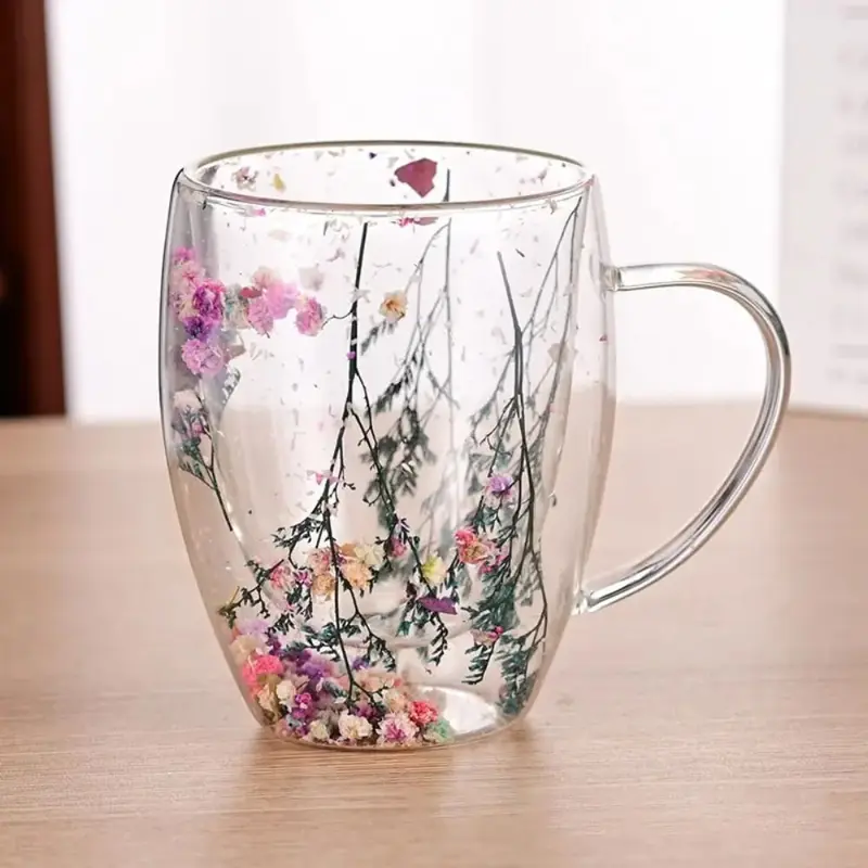 الشعبي مالناش فيه! هنا الأصلي وجمال الأصلي! قطعة فنية تمنح مشروبكِ لمسة من الرقة والجمال. هذا هو مج البيركس الدبل جلاس الحراري بالورد المجفف الأصلي، وليس المتاح في السوق، فهو يتميز بخامة وماتريال وفينش روعة تجعله هدية مميزة جداً!