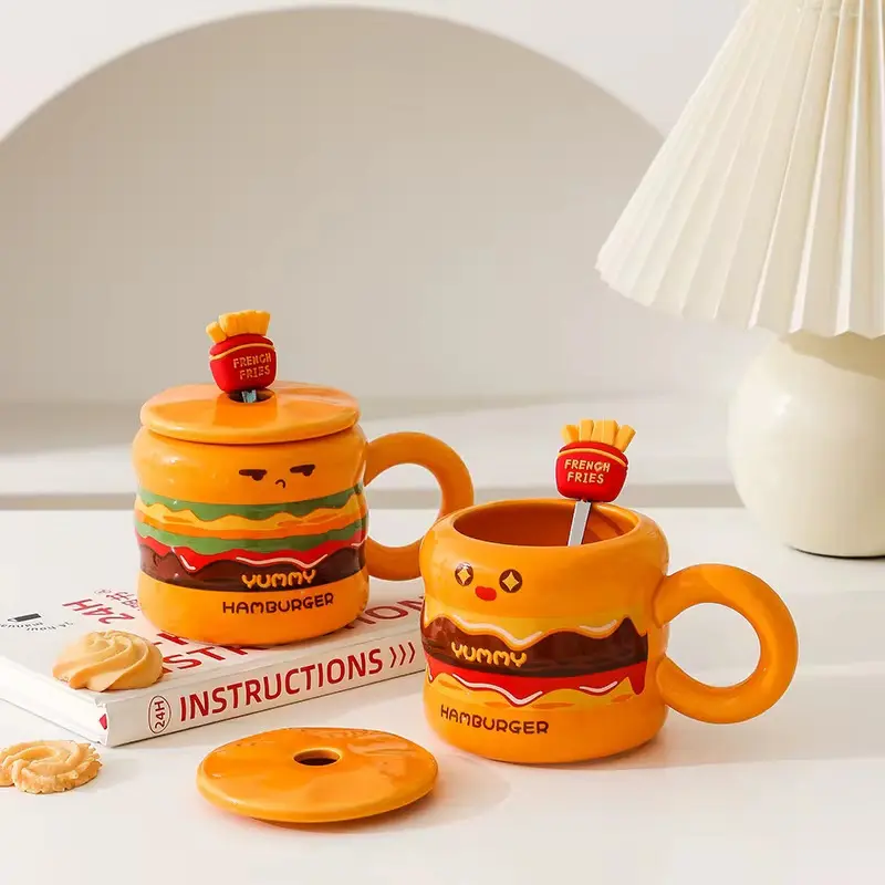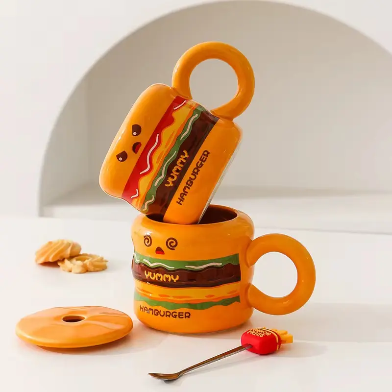 قطعة فنية تحاكي شغفك بالطعام اللذيذ. استمتعي بتجربة شرب فريدة مع مج البورسلين المصمم على شكل شطيرة هامبرغر شهية. صُنع ه…