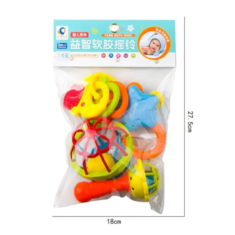 امنح طفلك الصغير متعة الاستكشاف واللعب مع مجموعة الشخاليل والألعاب الحسية 7 قطع. هذه الحقيبة المتكاملة مصممة بعناية لتحفيز حواس الرضيع وتنمية مهاراته الحركية في مراحله الأولى، مما يجعلها الرفيق المثالي لطفلك سواء في المنزل أو أثناء التنقل. كل قطعة في المجموعة تقدم تجربة مختلفة، من الأشكال المتنوعة إلى الأصوات الممتعة، مما يُبقي طفلك منشغلاً ومستمتعًا. تتميز هذه الألعاب بجودتها العالية ومتانتها، حيث صُنعت من بلاستيك آمن تمامًا وغير سام، مما يضمن سلامة طفلك أثناء اللعب ومرحلة التسنين. تتضمن المجموعة تشكيلة منوعة من الأشكال والألوان الزاهية التي تجذب انتباه الطفل وتُعزز من قدراته الإدراكية، كما أن بعض القطع يمكن استخدامها كعضاضات لتخفيف آلام التسنين. تأتي كل هذه القطع في حقيبة بلاستيكية شفافة لسهولة التخزين والحفاظ على الألعاب نظيفة ومنظمة، مما يسهل حملها معك في أي مكان.