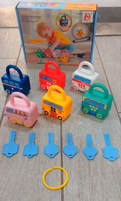 استمتعوا بتجربة تعليمية مليئة بالمرح مع مجموعة الأقفال والمفاتيح الملونة! هذه اللعبة المبتكرة مصممة لتُنمي ذكاء طفلكم ومهاراته الحركية، حيث يتعلم مطابقة الألوان والأشكال والأرقام بطريقة تفاعلية ومسلية.