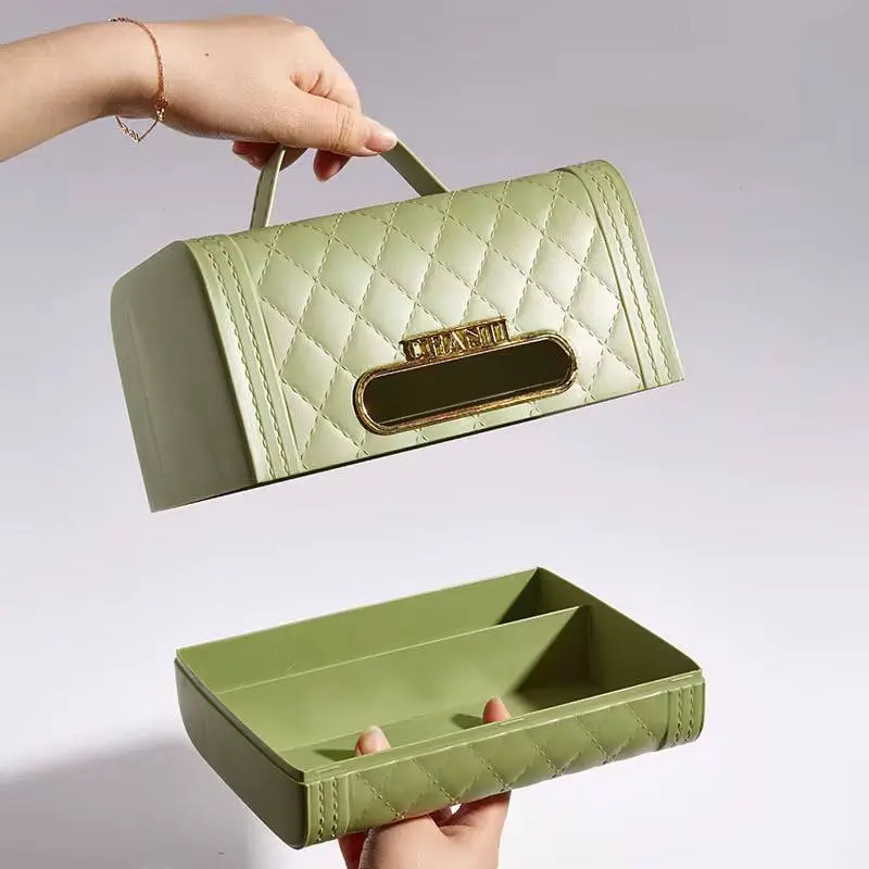 أضف لمسة من الأناقة والتنظيم إلى مكتبك أو طاولة مكياجك مع منظم مكتبي وعلبة مناديل بتصميمه المبتكر على شكل شنطة. هذا المنتج العملي يجمع بين وظيفتين في قطعة واحدة، مما يجعله إضافة مثالية لترتيب مساحتك بشكل جذاب.
