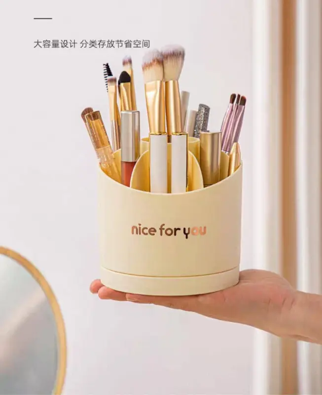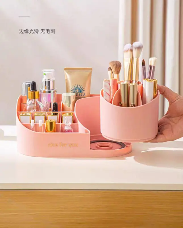 نقدم لكِ منظم المكياج الدوار، وهو الحل الأمثل لترتيب مستحضرات التجميل الخاصة بك. يتميز المنظم بتصميمه الذي يوفر مساحة كبيرة لتخزين أدوات المكياج، كما أنه مصنوع من البلاستيك عالي الجودة.