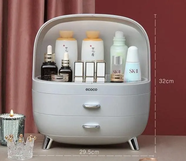 أناقة فائقة وتعدد لا مثيل له في الاستخدامات. نقدم لكِ هذا المنظم الأنيق من Ecoco، وهو قطعة عملية ومتعددة الاستخدامات، تم تصميمها بعناية لتكون إضافة فاخرة لطاولة الزينة الخاصة بكِ. يتميز المنظم بتصميمه العصري الذي يضفي لمسة من الأناقة، كما أنه مصنوع من مواد عالية الجودة، مما يضمن متانته وقدرته على تحمل الاستخدام اليومي. يتجاوز وظيفة هذا المنظم مجرد تخزين المكياج، حيث يمكن استخدامه كقطعة مميزة تضيف لمسة جمالية إلى أي مكان يوضع فيه. إنه الخيار الأمثل لتنظيم أدوات المكياج والعناية بالبشرة، حيث يضفي تصميمه لمسة من الشياكة والجمال. المنظم يتوفر بدرجتين سفليتين واسعتين وغطاء علوي شفاف، لتناسب جميع احتياجاتك المختلفة، مما يمنحك المرونة في الاختيار.