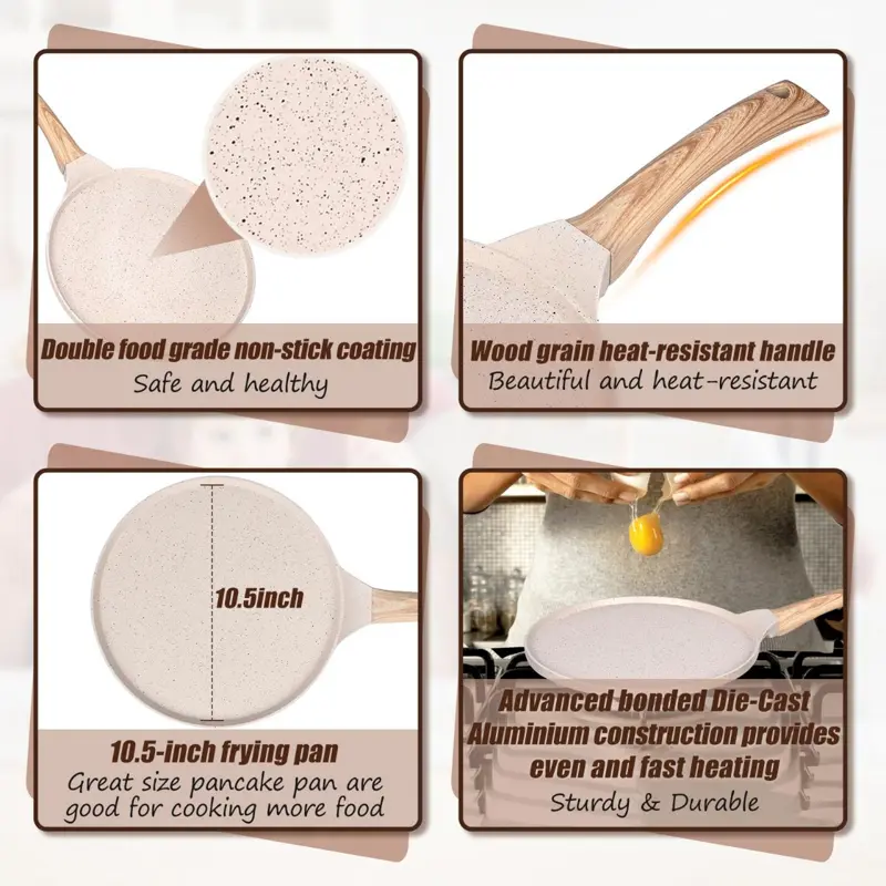 • متعددة الاستخدامات: مثالية لتحضير الكريب الرقيق، البان كيك، الأومليت، وحتى البيتزا الصغيرة بفضل سطحها المسطح.