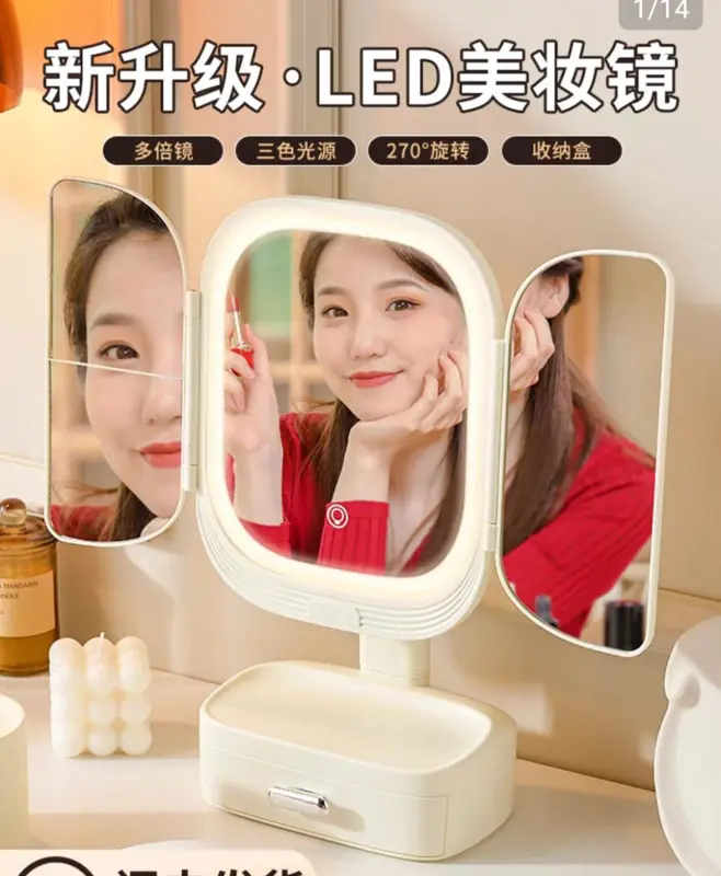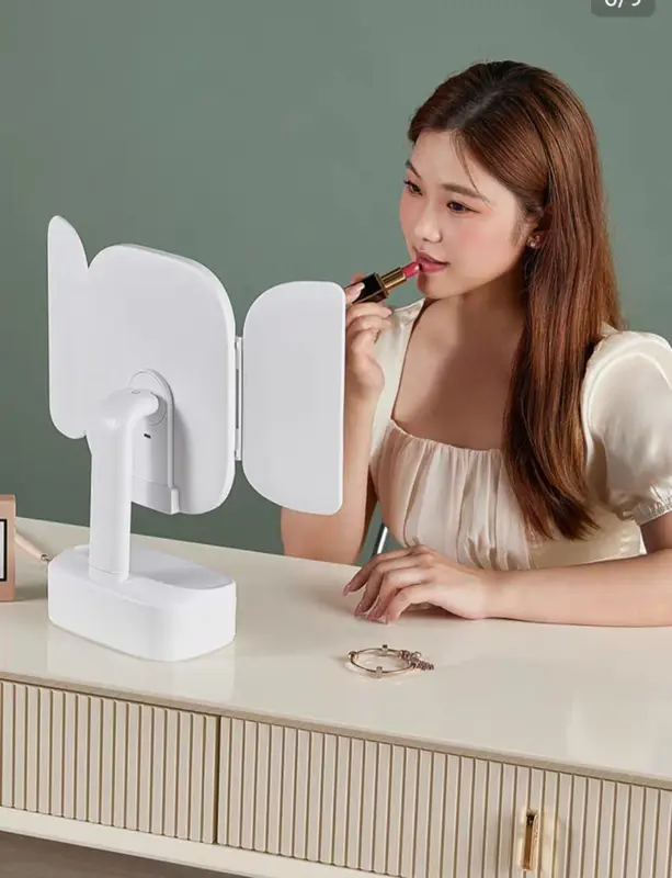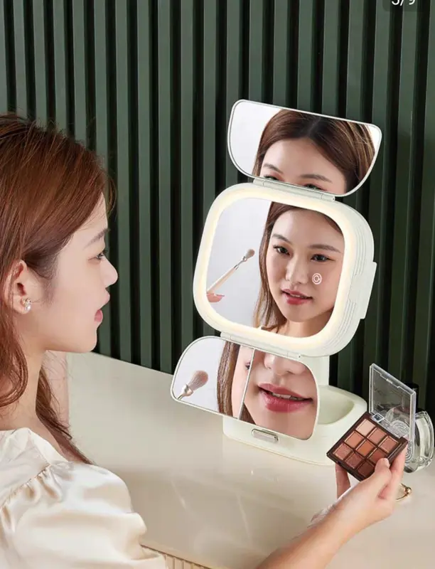 استمتعي بإطلالة مثالية مع هذه المرآة الثلاثية الأنيقة، التي تتميز بإضاءة LED قوية تظهر أدق التفاصيل. هذه المرآة المستوردة هي الخيار الأمثل لوضع المكياج أو العناية بالبشرة، حيث توفر إضاءة مثالية تظهر كل زوايا الوجه.