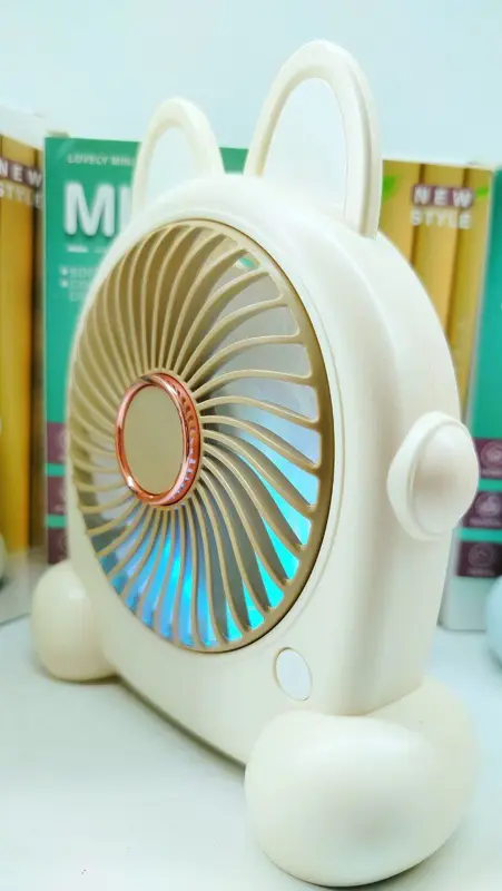ابقوا منتعشين بأناقة مع مروحة ستاند الشحن! هذه المروحة تجمع بين الأداء القوي والتصميم المرح، حيث تأتي على شكل أذني القطة اللطيفتين. تعمل بـ 3 سرعات مختلفة لتناسب جميع احتياجاتكم، من نسمة هواء خفيفة إلى تيار قوي. الميزة الأكثر جاذبية هي الإضاءة الداخلية المتغيرة التي تخرج من داخل المروحة، مما يضيف أجواءً ساحرة وجميلة إلى غرفتكم. بفضل قاعدة الستاند، يمكنكم وضعها على المكتب أو الطاولة بسهولة. إنها الحل الأمثل والأنيق لتبريد الهواء في أي مكان.