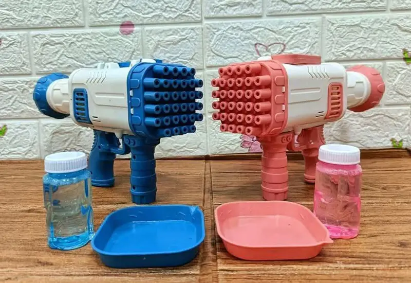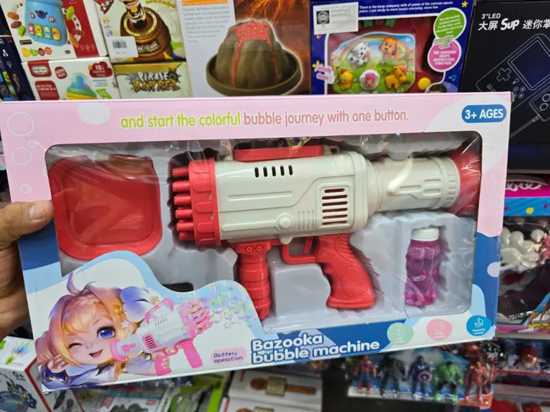 انطلق في عالم من المرح والفقاعات مع مسدس البابلز الكبير الذي يضمن لك ساعات من اللعب المبهج. صُنع هذا المسدس من بلاستيك ABS عالي الجودة، مما يجعله متينًا وآمنًا للاستخدام، ومزودًا بـ 32 فتحة لإطلاق كمية هائلة من الفقاعات في ثوانٍ. يعمل المسدس بالبطاريات، وهو مصمم بشكل مريح مع يد علوية لسهولة الحمل، مما يجعله مثاليًا للعب في أي مكان. تتضمن العبوة زجاجة صابون خاصة، كل ما عليك فعله هو تثبيتها في المسدس لتكون مستعدًا لإطلاق وابل من الفقاعات المتلألئة التي تملأ الهواء بألوان قوس قزح، وتضمن لك وقتًا ممتعًا لا يُنسى في الحدائق أو الشواطئ أو أي مكان خارجي.