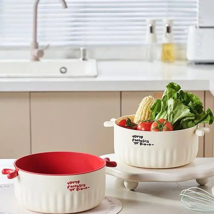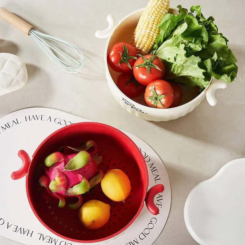 اجعلي عملية شطف وتصفية الطعام أكثر متعة وكفاءة مع المصفاة الذكية المزدوجة! يجمع هذا التصميم العملي واللطيف بين وعاءين في قطعة واحدة، ليمنحكِ طريقة سهلة وسريعة لغسل الخضروات والفواكه دون إحداث فوضى.
