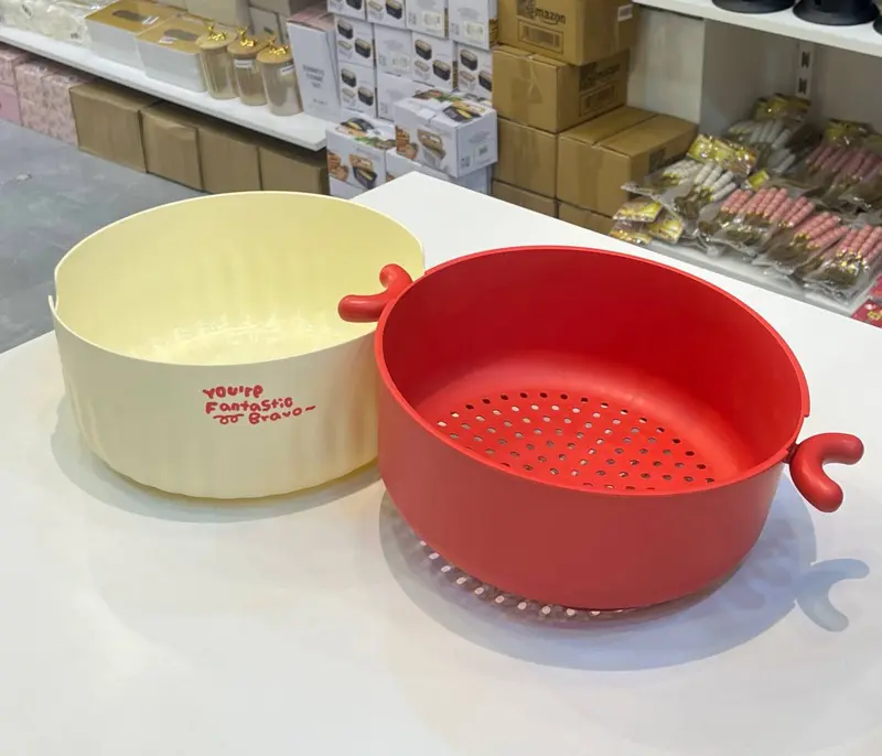 اجعلي عملية شطف وتصفية الطعام أكثر متعة وكفاءة مع المصفاة الذكية المزدوجة! يجمع هذا التصميم العملي واللطيف بين وعاءين ف…