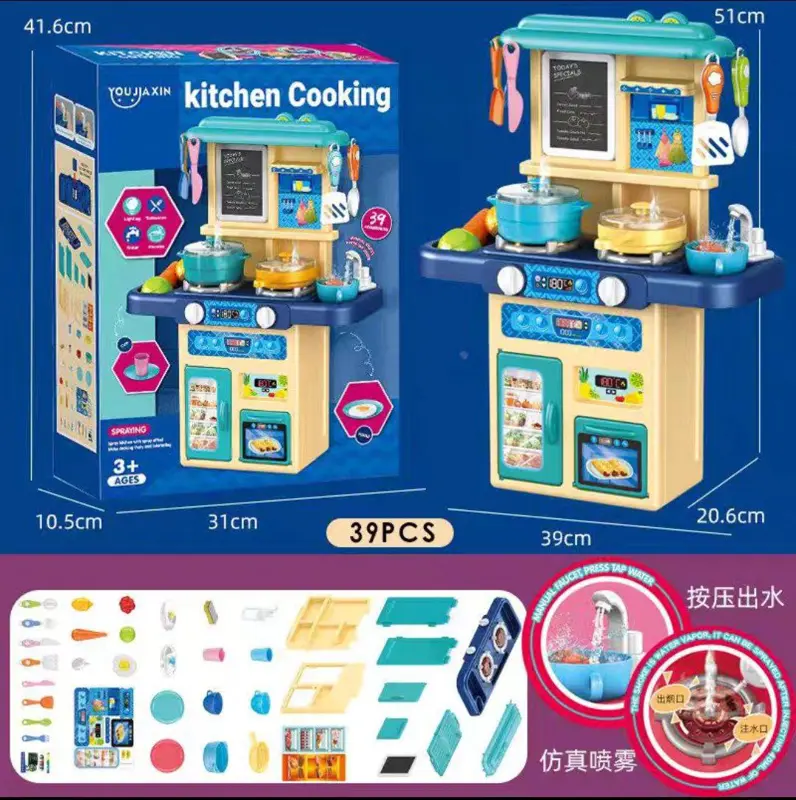 امنح طفلك فرصة استكشاف عالم الطبخ مع مطبخ لعب الأطفال التفاعلي! هذه المجموعة المذهلة تُقدم تجربة لعب تظاهري فريدة من نوعها، بفضل الموقد الإلكتروني الذي يضيء ويُصدر أصواتاً واقعية، تماماً مثل المطبخ الحقيقي. يضيف الحوض بمياه جارية لمسة من السحر، حيث يمكن لأطفالك غسل الأطباق والأطعمة الصغيرة، مما يعزز إحساسهم بالمسؤولية ويُنمي مهاراتهم الحركية. تأتي المجموعة مع 39 قطعة من إكسسوارات المطبخ المتنوعة، من الأواني والملاعق إلى الأطعمة الصغيرة، لتُمكنهم من إعداد أشهى الأطباق الخيالية. بأبعاد 51 سم طول و39 سم عرض، يعتبر هذا المطبخ مثاليًا للعب في أي غرفة. إنه الهدية التي ستُشعل خيالهم وتُبهرهم بأضوائه وأصواته الواقعية.