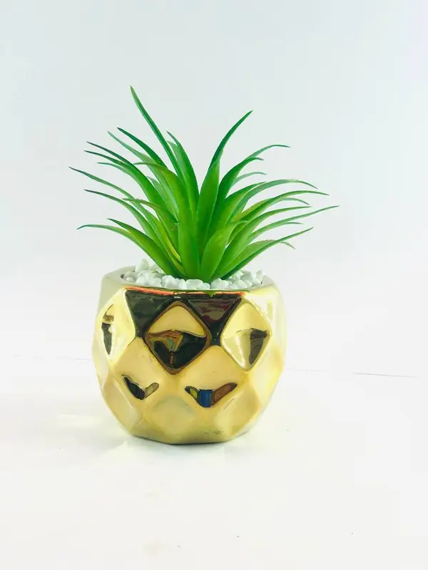 أضف لمسة من الفخامة والجمال إلى أي مساحة مع نبات الزينة في وعاء رخامي بتصميم ذهبي لامع. هذه القطعة الفنية الصغيرة هي ال…