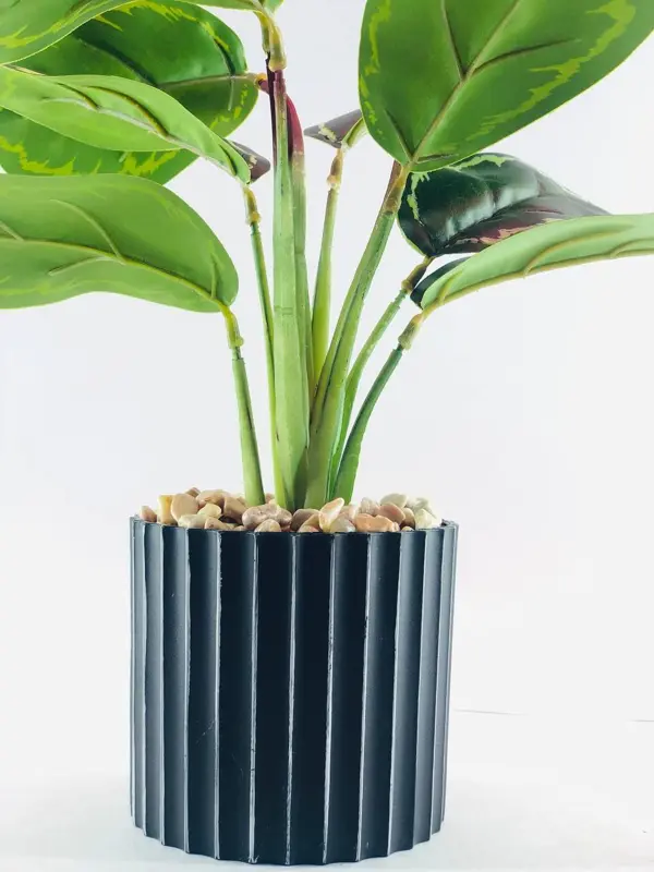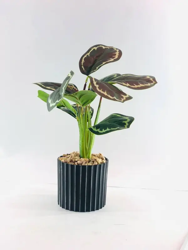 يُعد نبات الزينة الأنيق في وعاء أسود بخطوط بيضاء إضافة مميزة لأي مكان، فهو يجمع بين جمال الطبيعة وسحر التصميم العصري. بفضل مظهره الجذاب، يعتبر هدية مثالية تُضفي لمسة من الحيوية والجمال على مكتبك أو منزلك.