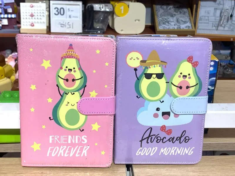 دوّن ملاحظاتك وأفكارك بأناقة مع هذا النوت بوك المميز. يتميز النوت بوك بتصميمه اللطيف الذي يجمع بين شخصيات الأفوكادو الكرتونية، وبغطاء مغناطيسي يضمن بقاءه مغلقًا بإحكام. النوت بوك عملي ومناسب للاستخدام في المدرسة، الجامعة، أو العمل، ويضيف لمسة من البهجة إلى يومك.